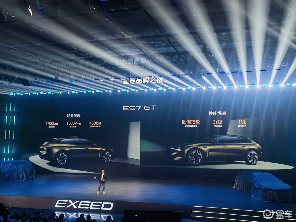 星途ES系列将以性能为基础,旗下星途ES7 GT是一台性能GT车型,混动版本将拥有1700km的综合续航,纯电版本则将搭载1000V平台,充电5分钟续航450km,零百加速可达3秒级。