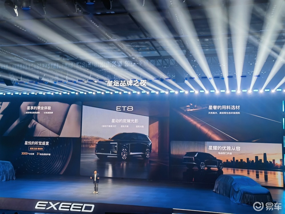 星途ET系列则为SUV系列,星途ET8将定位为豪华动感SUV,将拥有星享驾乘体验、听觉盛宴及用料选材等配置。