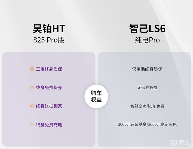 04 养车成本,一笔不容忽视的经济账既然提到了权益,干脆帮大家算笔综合账。昊铂HT不仅有终身免费充电,还有终身免费保养、三电终身质保、免费送桩到家权益。而智己LS6权益主要为“选装基金”和“有限期智驾免费”。