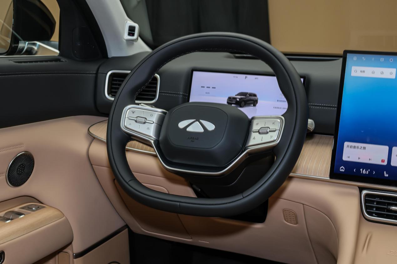 这么大的一台车它的动力方面如何呢?作为一台增程车它也是由增程器与电机搭配的组合,搭载1.5T鲲鹏增程专用发动机,采用前后双电机四驱布局,系统综合功率高达345kW,峰值扭矩634N・m,0-100km/h 加速时间仅为5.4秒,作为接近3吨的车有这个表现算是不错了。电池配备39.6kWh电池,CLTC工况下纯电续航里程为220公里,综合续航超过1400公里。