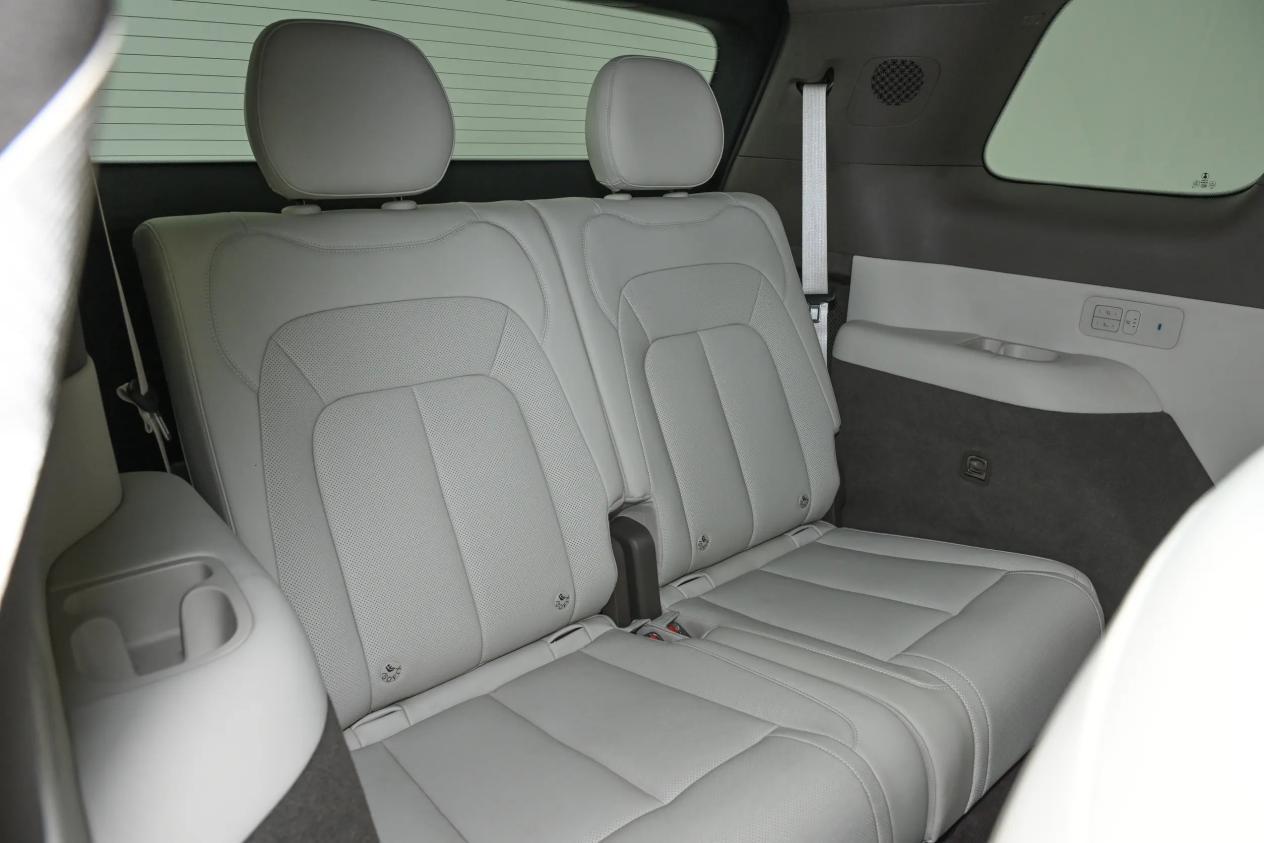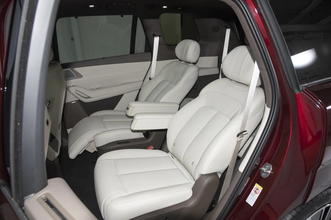 座椅配置方面,第一、二排座椅均支持加热、通风和10点式按摩功能,其中主驾配有侧翼支撑功能,弯道行驶可以在反向一侧提供支撑,固定驾驶员身体,提供更好的驾驶感受,旗舰型副驾配有零重力座椅,支持一键开启,配备四向电动腿托。中排座椅右侧配备电动女王腿托,并搭载双小桌板,方便孩子进食娱乐。第三排座椅则支持加热功能和电动靠背角度调节,打破了传统SUV第三排座椅的将就体验。