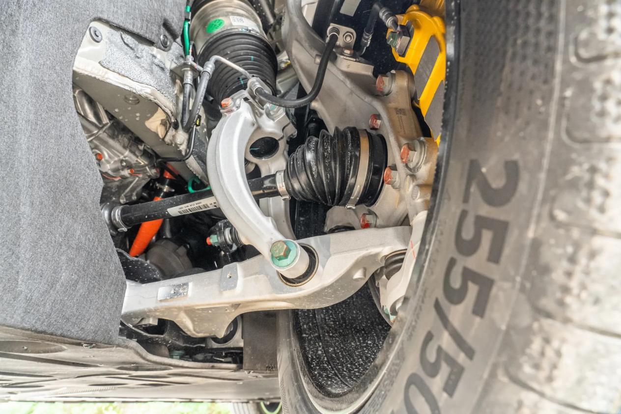 悬架系统采用前双叉臂后五连杆结构,搭载云辇-A智能空气车身控制系统,悬架可举升50毫米提升通过性;或降低50毫米,方便上下车和拿放物品。通过双腔空簧与连续阻尼可调的电控减振器,动态调节悬架刚度与阻尼,减小车身侧倾。系统配备预瞄功能,通过传感器扫描前方路面情况,提前主动调节悬架状态,提高驾乘舒适性。