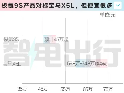 新车有望于下月亮相,预计在一季度末正式上市。参考极氪9X目前53.8万元的成交均价,市场普遍预测极氪9S的起售价会在45万元左右,比宝马X5L便宜15万。
