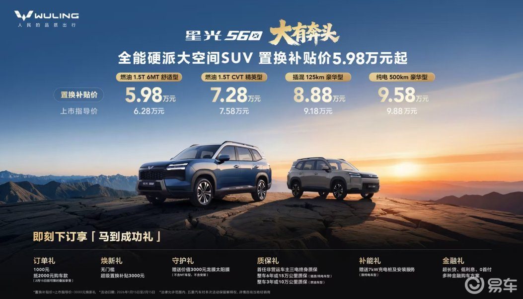 此外,五菱星光 560在春节即将来临之际,也诚意推出了更多优惠活动:自2026年1月15日起至2月15日,在五菱汽车APP/小程序等官方渠道,即刻下订享「马到成功礼」,包括: