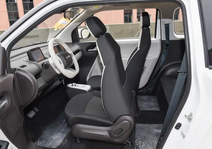 车身尺寸和其他版本一样,3293x1700x1545mm的长宽高,轴距1980mm,典型的微型车身材,不管是老小区的狭窄车位,还是商圈的紧凑停车位,停起来都不用费劲儿,新手也能轻松拿捏。不过作为入门款,细节上有些调整,比如没了悬浮式车顶设计,轮毂罩换成了糯芯白样式,整体质感还是在线的。