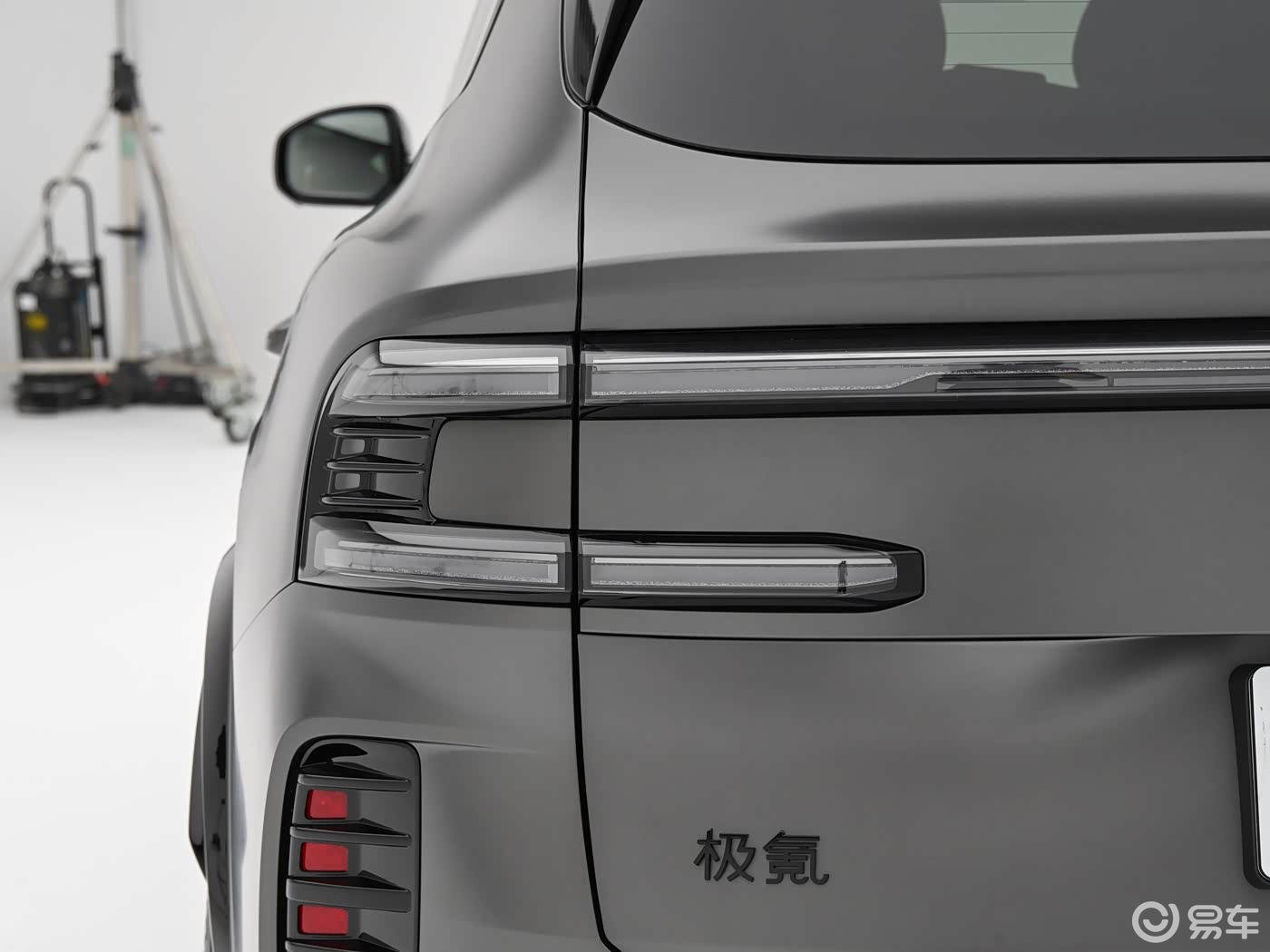 车尾部分,极氪8X的设计也很有层次感和立体感,车顶配备有小尺寸扰流板和高位刹车灯,尾灯组为时下流行的贯穿式设计,两侧还营造出半环绕式造型,点亮后也带来不错的视觉效果。此外,新车还配备了大尺寸尾门和宽大的后包围,并营造出扩散器造型,风格颇为大气。