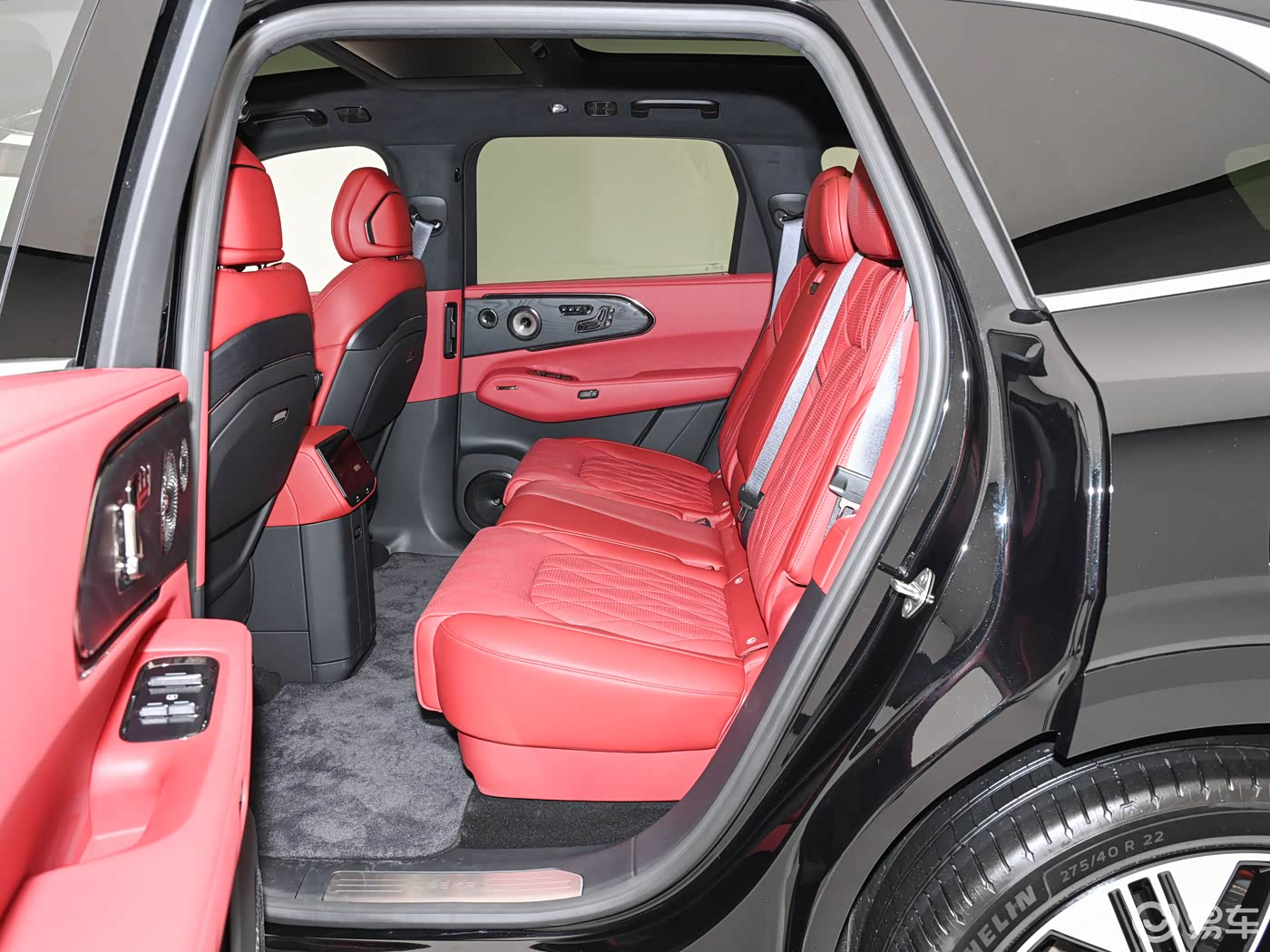 乘坐部分,极氪8X将提供5座/6座可选,功能性也比较丰富,像主驾靠背主动侧翼支撑、前后排座椅加热/通风/按摩等功能通通没有缺席,后排也提供了零重力座椅。此外,新车还提供了冷暖冰箱、吸顶式娱乐屏、电动遮阳帘、小桌板、全景天窗等一系列舒适性配置,全面保障用户的驾乘体验。