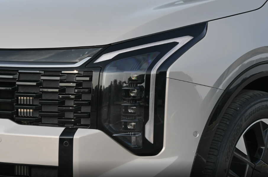 大面积熏黑前格栅造型立体,为前脸增添硬朗气息。格栅边缘处加以不规则熏黑饰板进行点缀,两侧换装采用全新纵向布局的Star-Map LED前灯组,同时将L型日间行车灯融入其中。前唇处加以银色饰板点缀,如果是2.0T版本还将加入大面积熏黑套件,进一步强化运动时尚感。